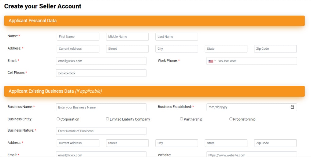 If you are a registered business seller (sole proprietor/Single-member LLC, Corporation/Multi-member LLC, Partnership), please select Reseller / Business account on the registration page. Rasha will ask for some additional details, like your business name, type, address, and any beneficial owners, officers, directors, or account managers.