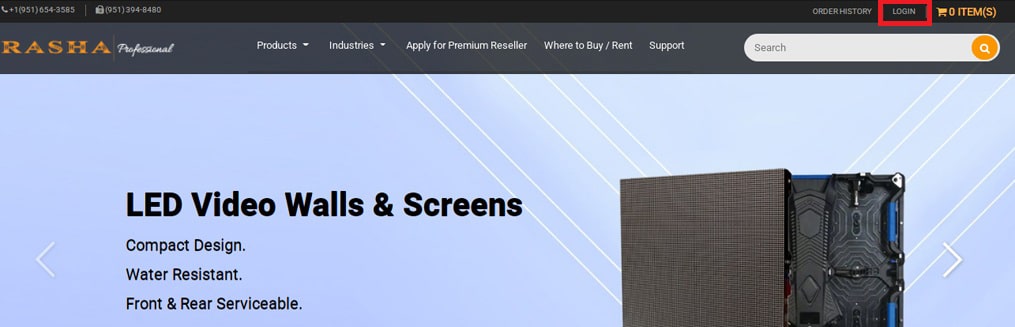 1. In Menu, click Login on any Rasha page to open your reseller account.